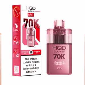 The HQD Glow Air 70K features a sleek, futuristic body paired with a panoramic curved display, delivering both cutting-edge aesthetics and outstanding performance for vapers who want style and power in one device.